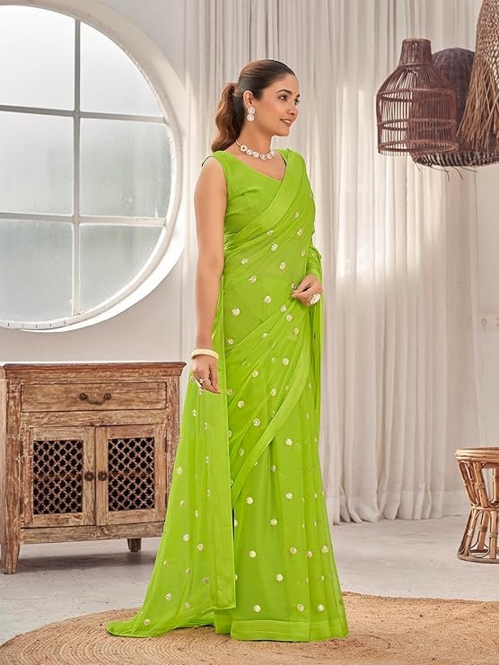 Manohari Most Trendy Embroidery Saree With Unstich Blouse Piece Green