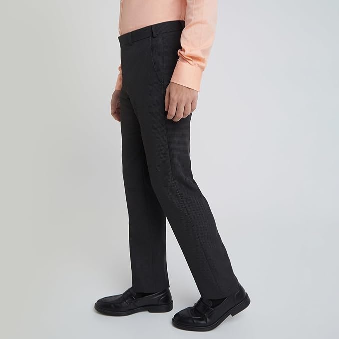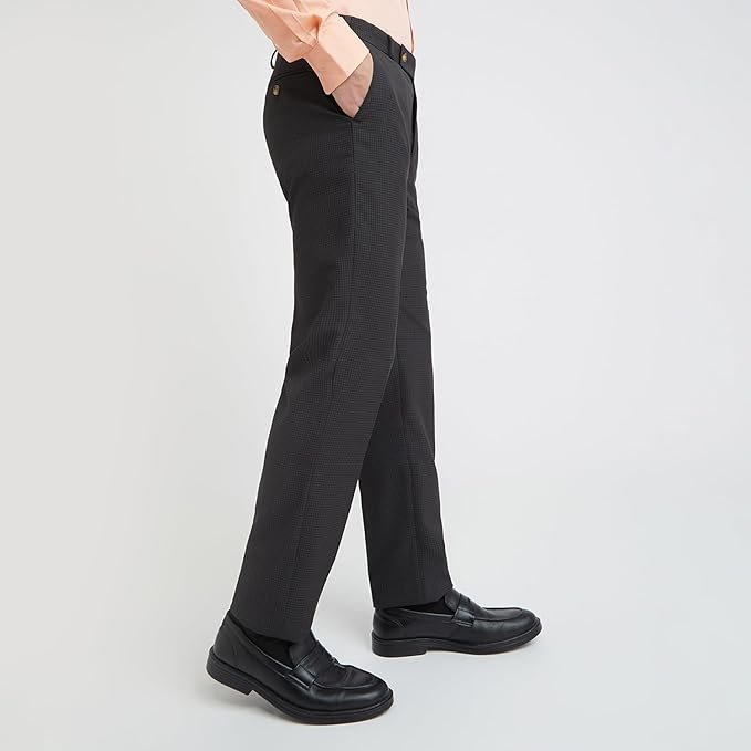 Park Avenue Men’s Regular Fit Mid Rise Checks Pattern Poly Viscose Blend Flat Front Formal Trouser