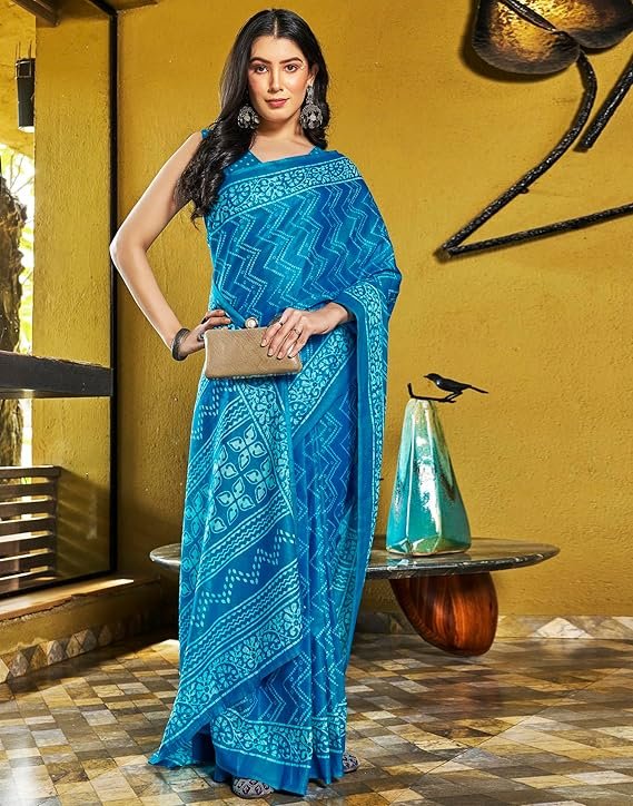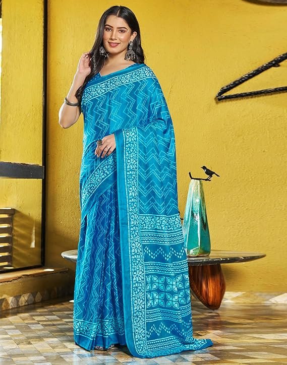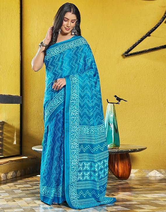 SIRIL Women’s Cotton Printed Ready To Wear One Minute Saree With Unstitched Blouse Light Blue