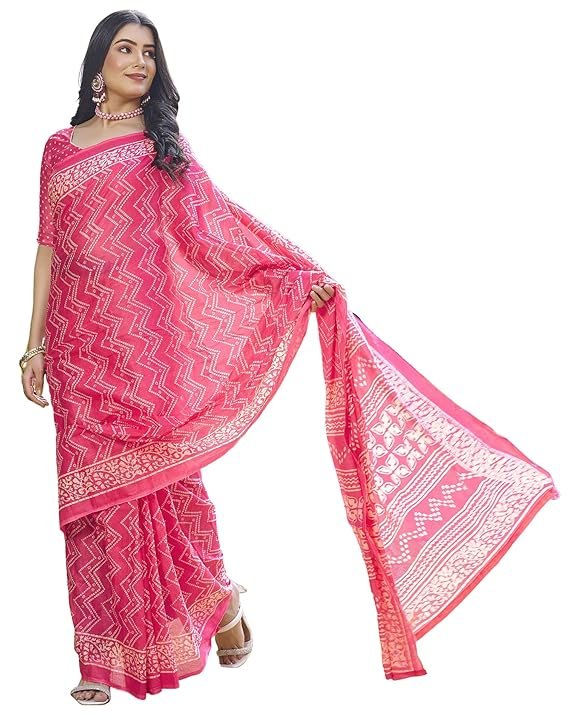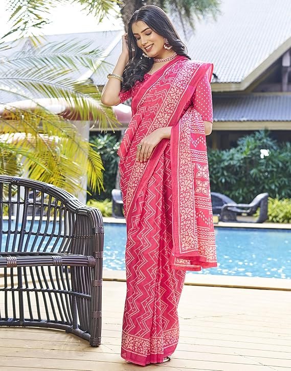 SIRIL Women’s Cotton Printed Ready To Wear One Minute Saree With Unstitched Blouse Pink