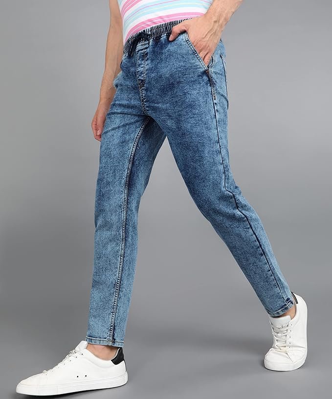 Urbano Fashion Men Mid Rise Regular Fit Washed Jogger Jeans Stretchable Blue