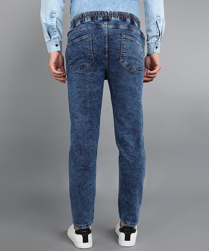 + Free ShippingStylish & Trendy Towel Washed Dark Blue Jogger Jeans – Elasticized Waistband with Drawstring