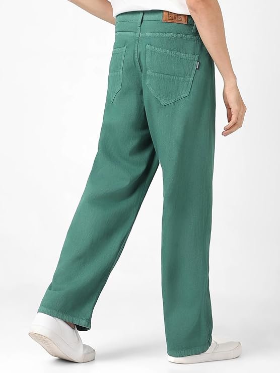 Urbano Fashion Men’s Loose Mid Rise Baggy Fit Washed Jeans Non-Stretchable Dark Green
