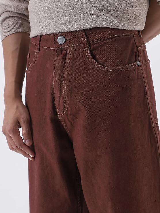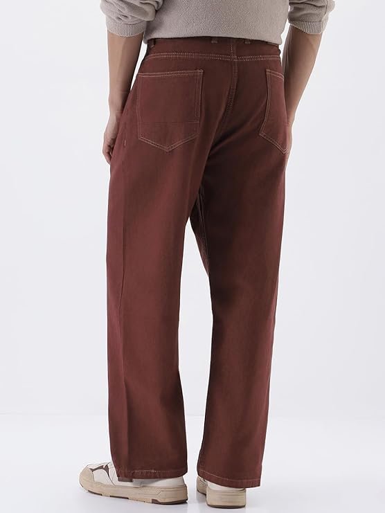 Urbano Fashion Men’s Loose Mid Rise Jeans Brown